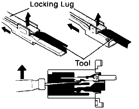 a. Locking device must be disengaged before the terminal locking clip can be released and the terminal removed from the connector.