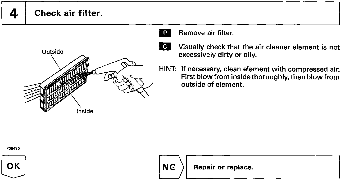 In many cases, by carrying out the basic engine check shown in the following flow chart, the location causing the problem can be found quickly and efficiently. Therefore, use of this check is essential in engine troubleshooting.