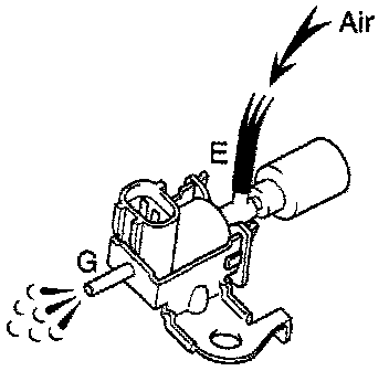 - Check that air flows from port E to the filter. If operation is not as specified, replace the VSV.