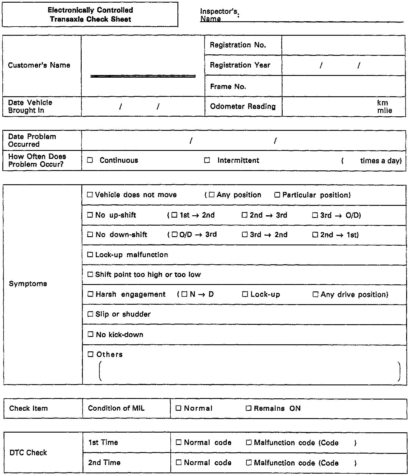 Customer Problem Analysis Check Sheet