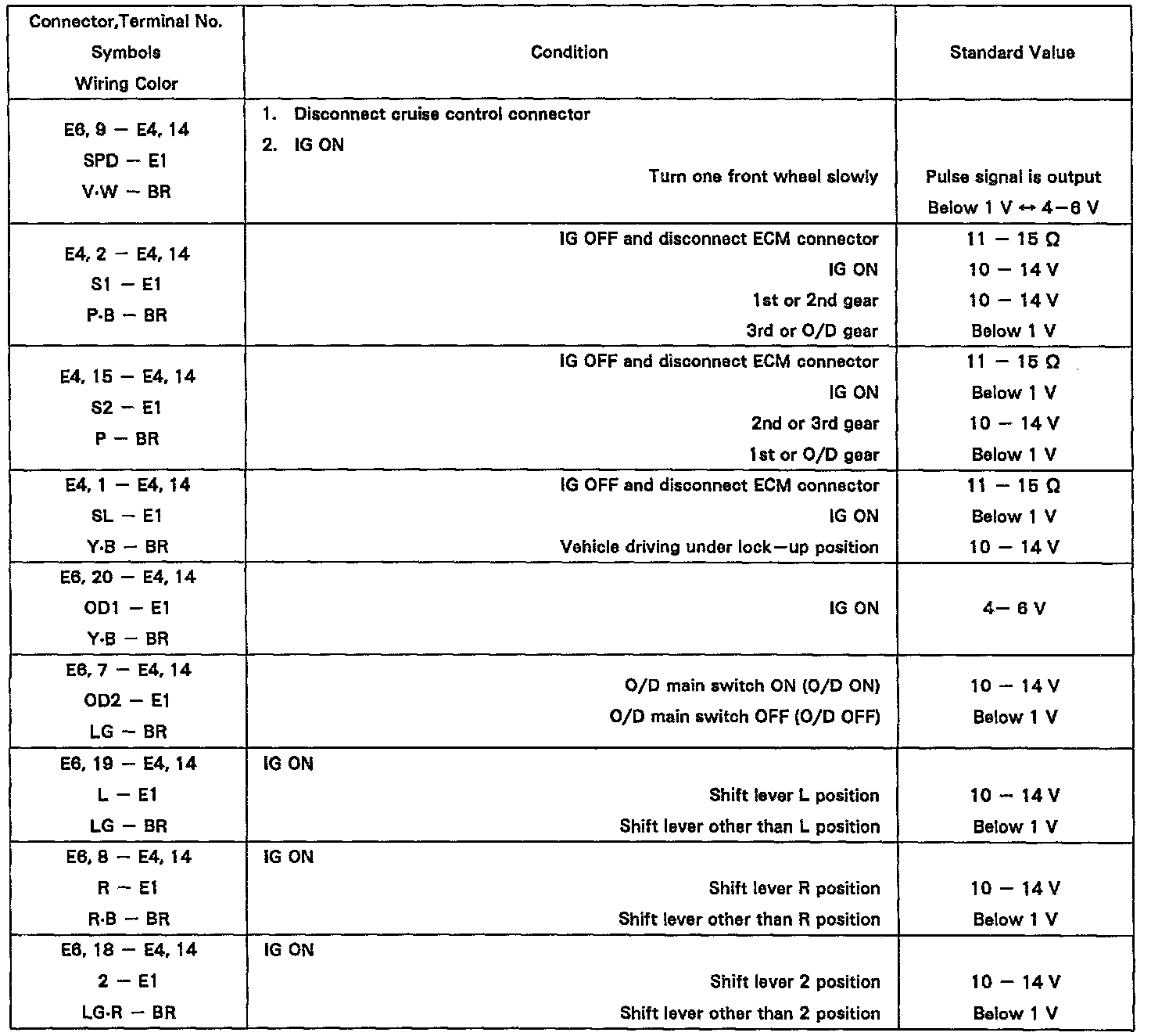 Pinout Values and Diagnostic Parameters