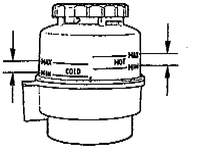 HINT: Check that the fluid level is within the HOT LEVEL range on the reservoir. If the fluid is cold, check that it is within the COLD LEVEL range.