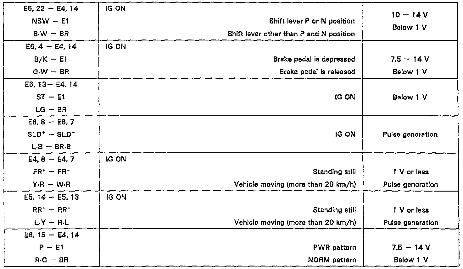 Pinout Values and Diagnostic Parameters