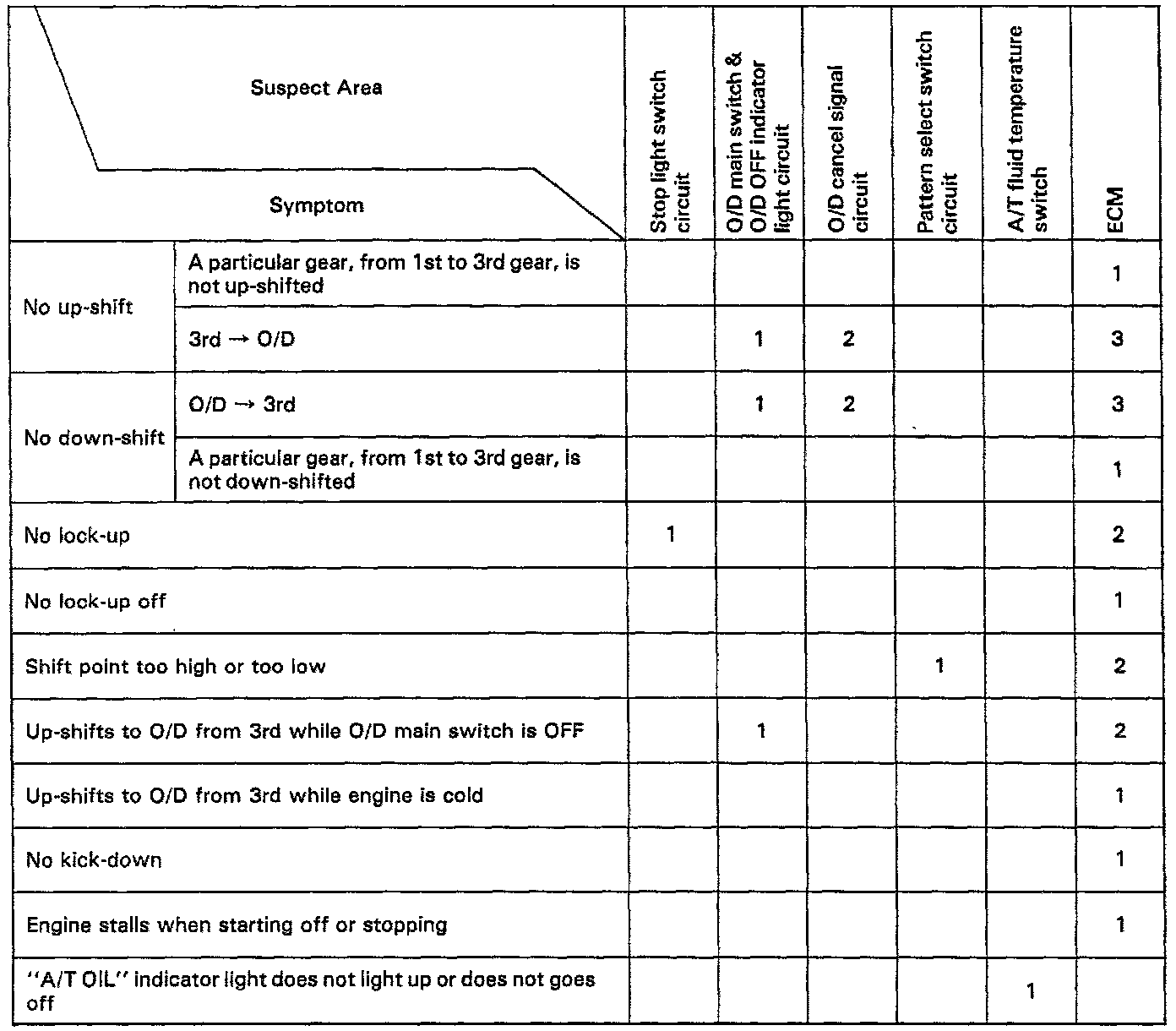If a normal code is displayed during the DTC check but the trouble still occurs, check the circuits for each symptom in the order given in the charts on the following pages and proceed to the page given for troubleshooting.The Matrix Chart is divided into 3 chapters.