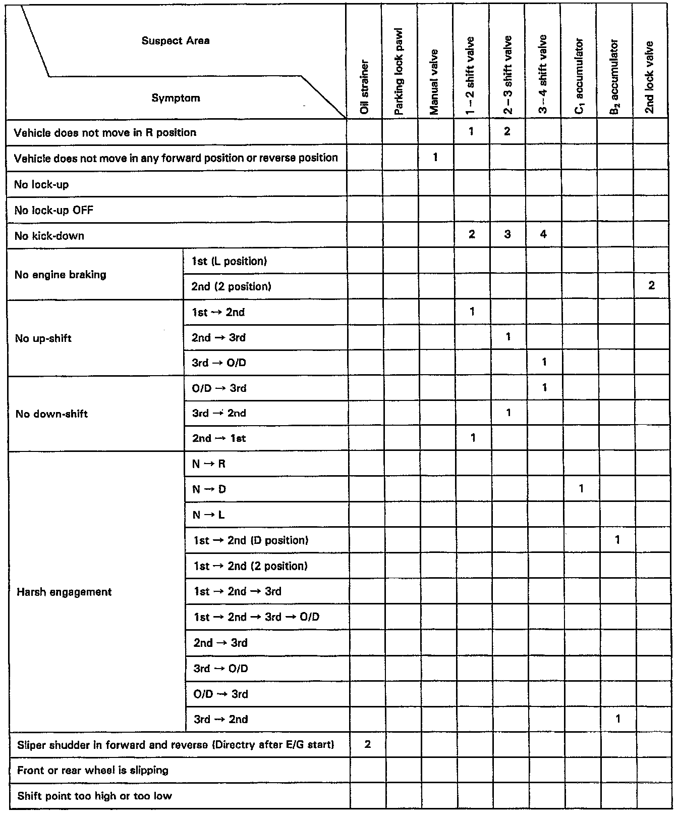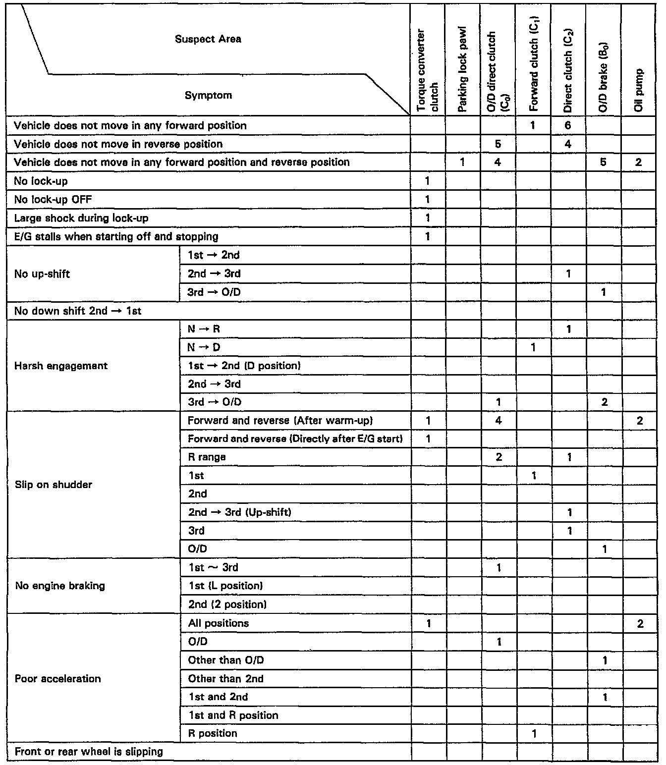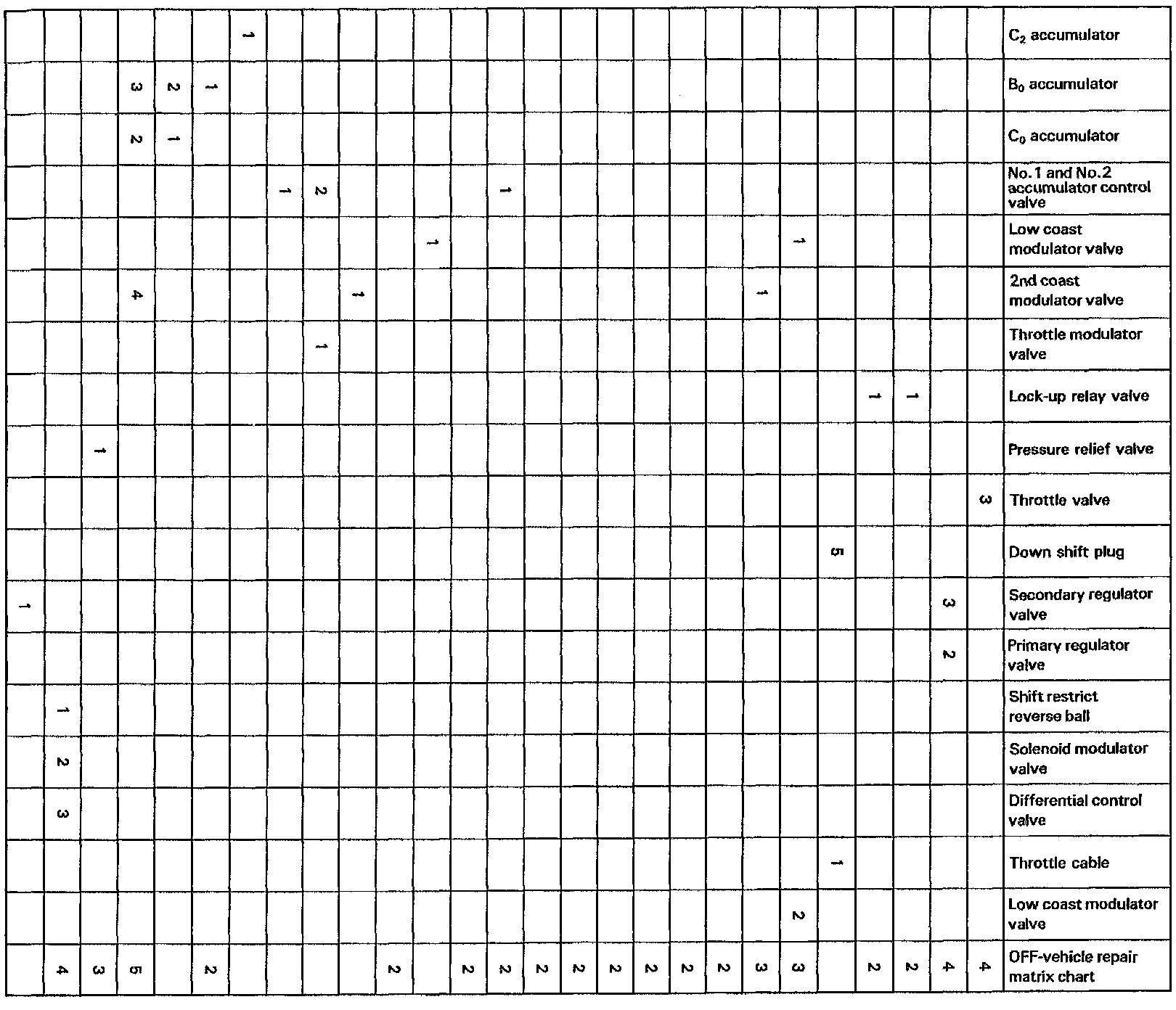 Chapter 2: On-Vehicle Repair Matrix Chart
