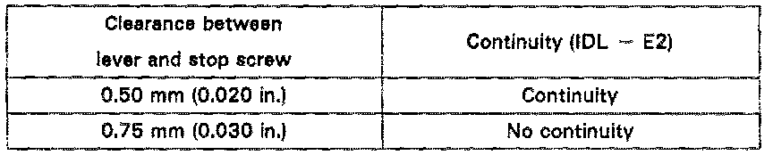 3. Insert a 0.62 mm (0.024 in.) feeler gauge between the throttle stop screw and stop lever.