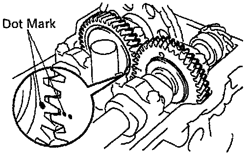- Verify that the timing marks with 1 and 2 dots are in straight line on the cylinder head surface as shown in the illustration.