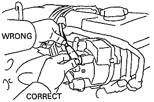 - Do not wipe any of the oil from the grommet after the high-tension cord is disconnected.