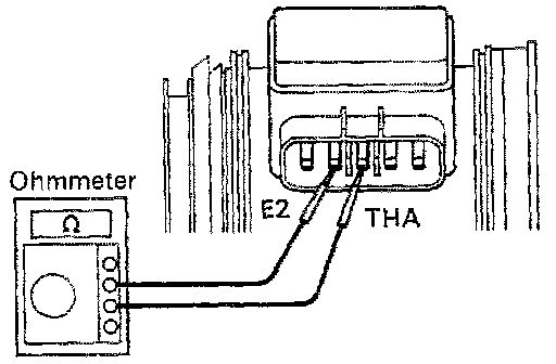 - Using an ohmmeter, measure the resistance between terminals THA and E2.