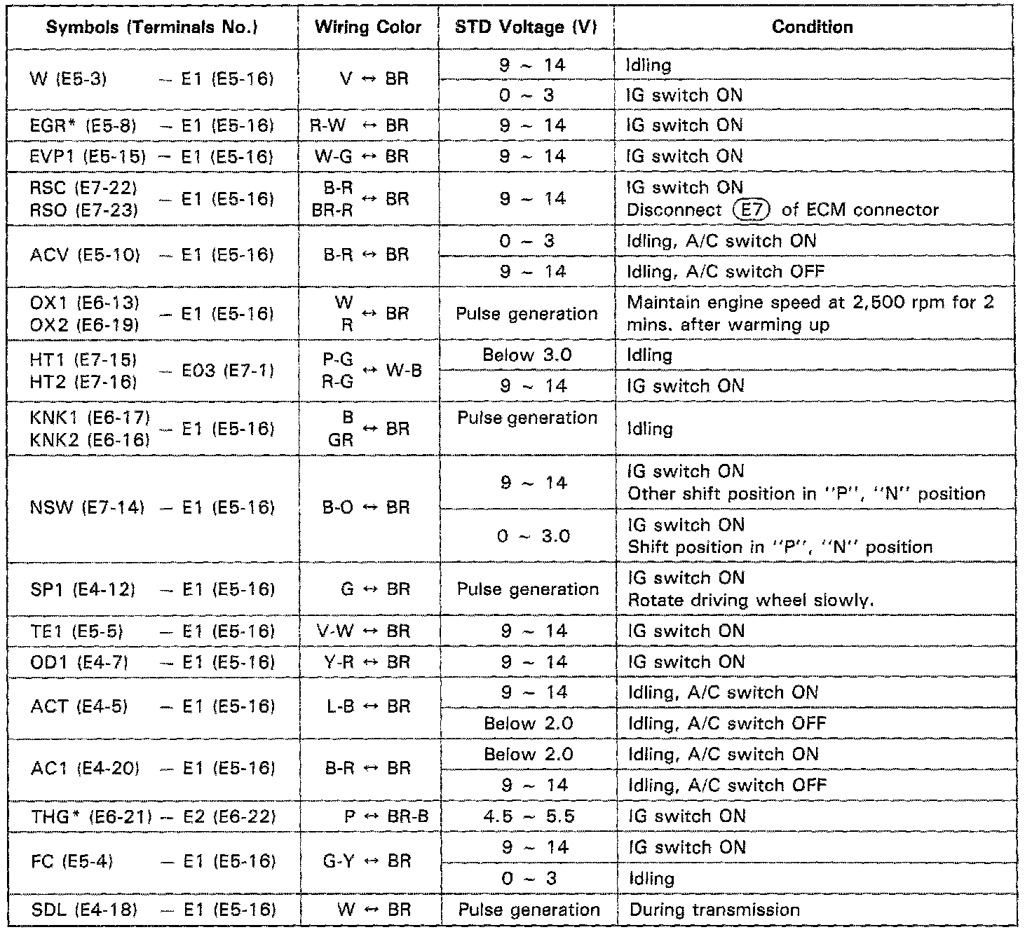 STANDARD VALUE OF ECM TERMINALS