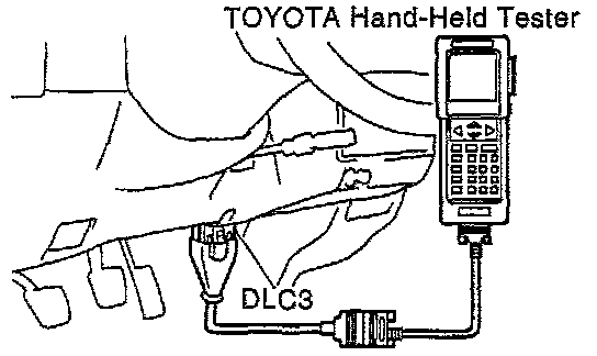 - Connect the TOYOTA hand-held tester or OBD II scan tool to the DLC3.