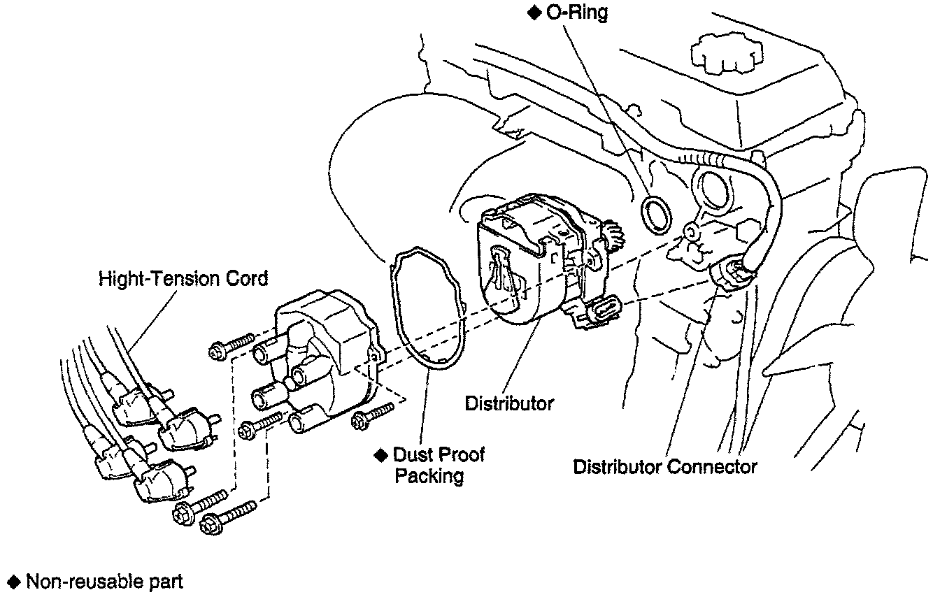 - Remove the 2 mounting bolts, and pull out the distributor.