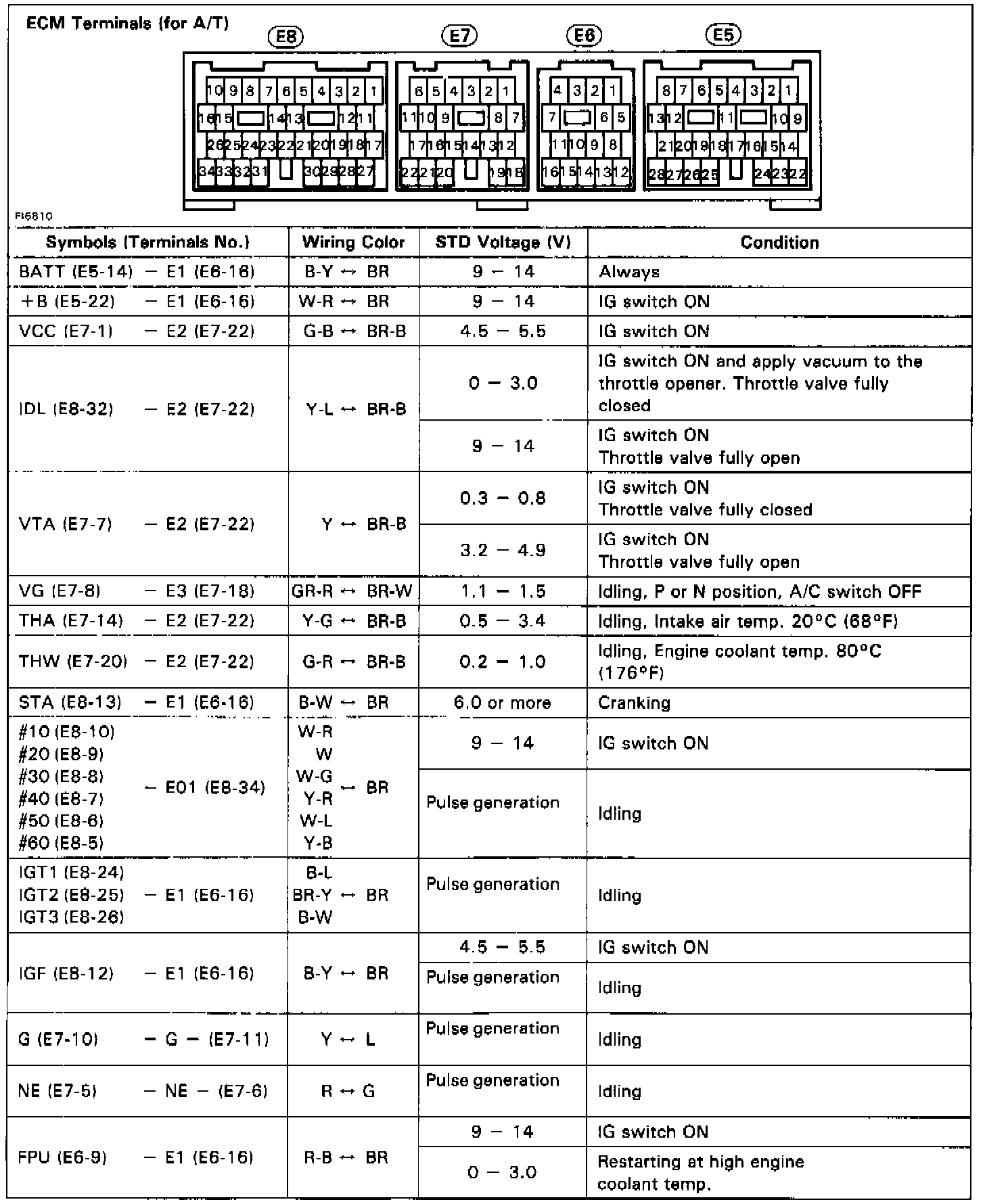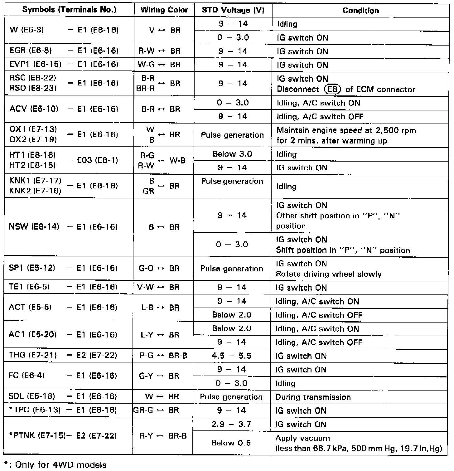 When measuring the voltage or resistance of the connector part of the ECM, always insert the test probe into the connector from the wire harness side.