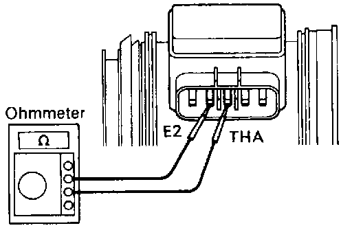 - Using an ohmmeter, measure the resistance between terminals THA and E2.