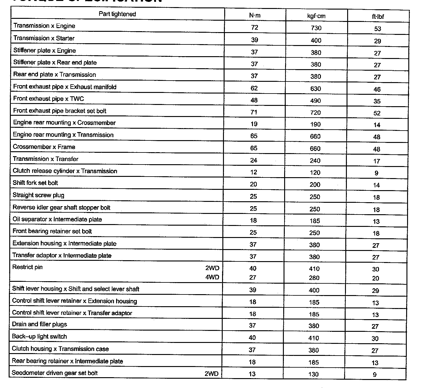 M/T Torque Data