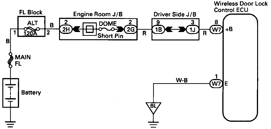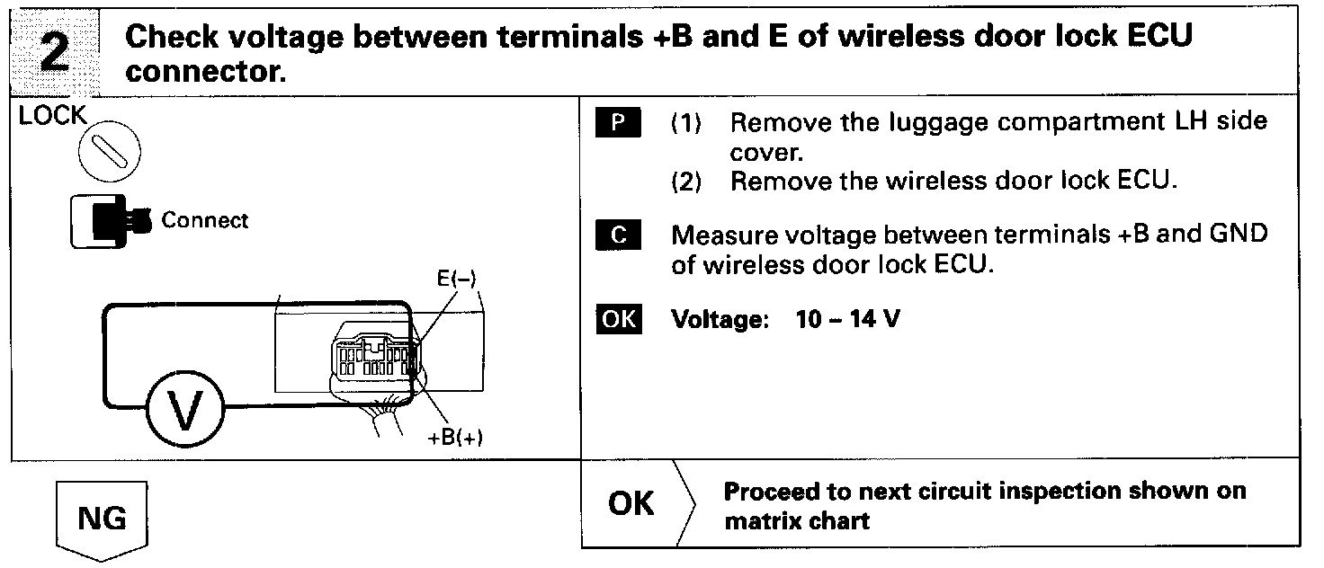 Battery positive voltage is always applied to the terminal +B of the wireless door lock ECU