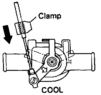 b. Set the water valve lever to "COOL", install the control cable and lock the clamp.