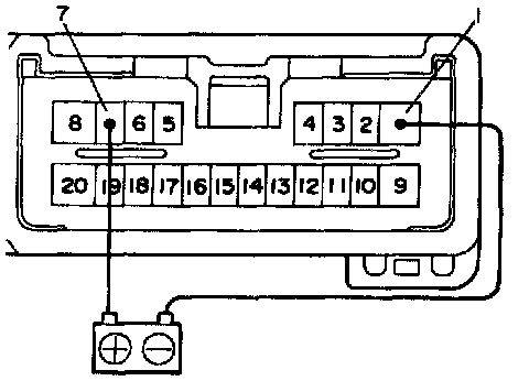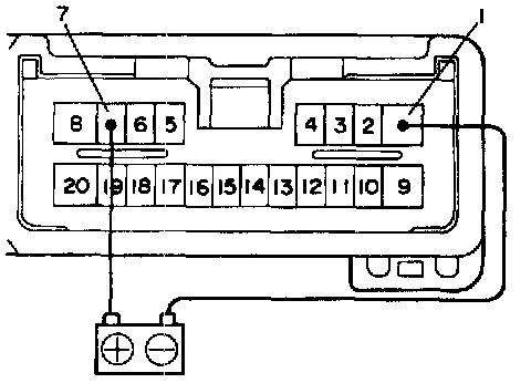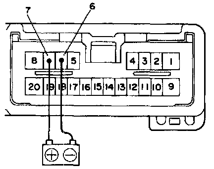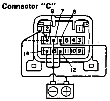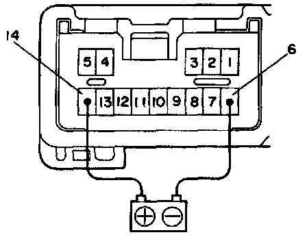 a. Connect the positive (+) lead from the battery to terminal C-6 and the negative (-) lead to terminal C-7. 14 and 2.