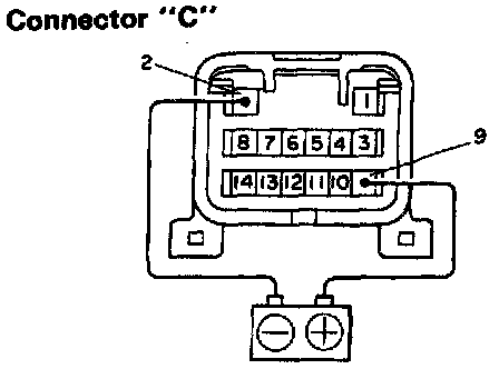 a. Connect the positive (+) lead from the battery to terminal C-9 and the negative (-) lead to terminal C-2.