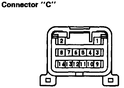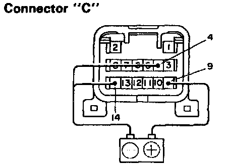 c. Connect the positive (+) lead from the battery to terminal C-9 and the negative (-) lead to terminal C-14.