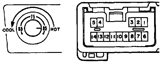 b. Gradually turn the temperature control dial from HOT side to COOL side, and check that the resistance between terminals B-4 and B-5 increase from O to approx. 3 K Ohms.