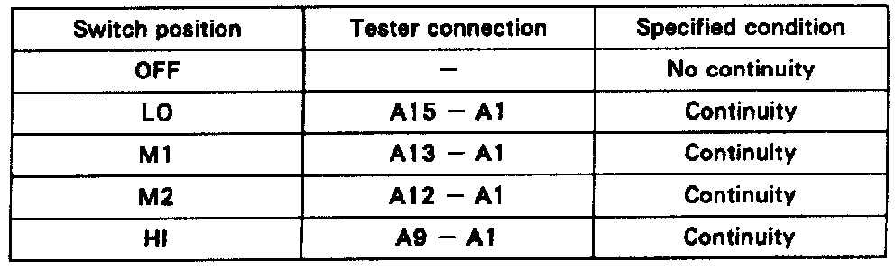 6. BLOWER SPEED CONTROL SWITCH CONTINUITY