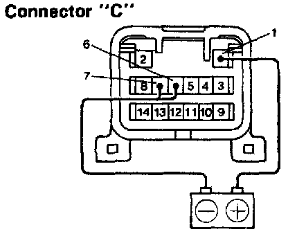a. Connect the positive (+) lead from the battery to terminal C-1 and the negative (-) lead to terminal C-6 and C-7.