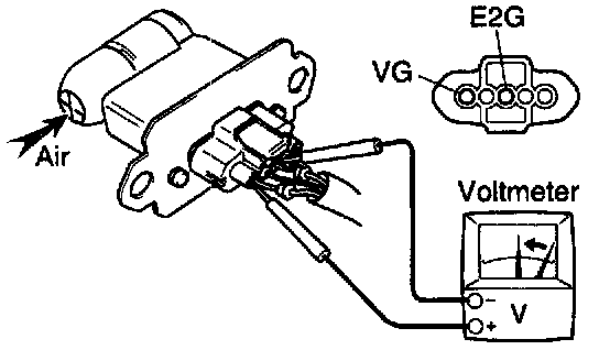 (c) Using a voltmeter, connect the positive (+) tester probe to terminal VG and negative (-) tester probe to terminal E2G.