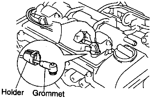 NOTICE: Check that the holder is correctly installed to the grommet and ignition coil as shown in the illustration.