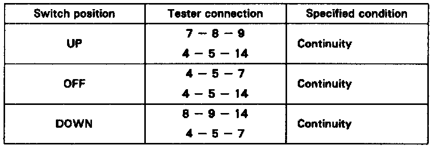 If continuity is not as specified, replace the master switch.