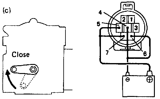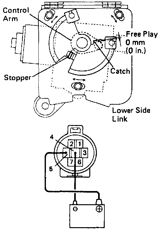 2. With the magnetic clutch ON. connect the positive (+) lead from the battery to terminal 6 and the negative (-) lead to terminal 7.