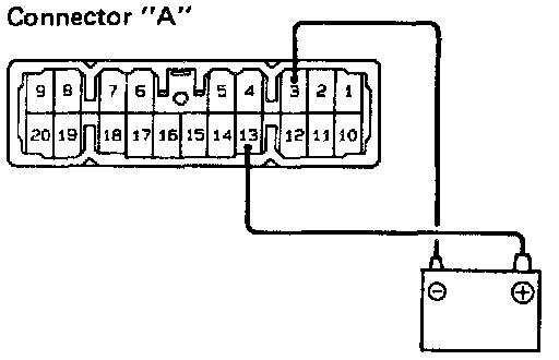 c. Then, connect the positive (+) lead from the battery to terminal A-13 and check that the indicator dims.