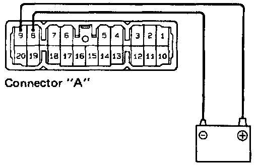 a. Connect the positive (+) lead from the battery to terminal A-9 and the negative (-) lead to terminal A-8.