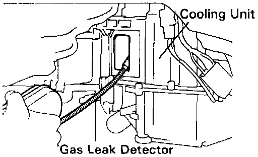b. If gas leak is not detected on the drain hose, remove the blower register from the A/C unit. Then insert the gas leak detector sensor into the unit and perform the test.