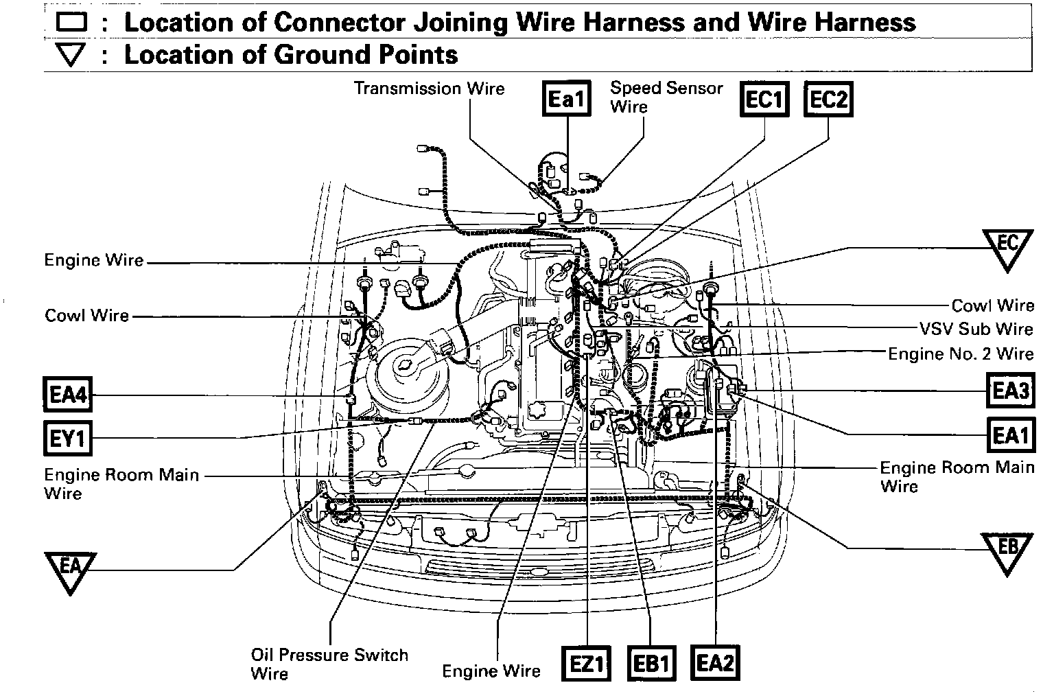 Location Of Connector Joining Wire Harness And Wire Harness Ground Points (Fig 30):