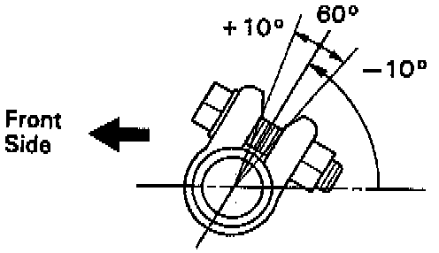 NOTE: The clamps opening must be positioned at the rear of the tie rod and face within 60° ± 10° (-.833° to +1.16°) from the vehicle axis.