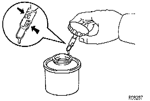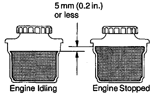 b. Wait a few minutes and remeasure the fluid level in the reservoir. The fluid level rise should not be more than a maximum 5 mm (0.2 inch). If a problem is found, bleed power steering system.