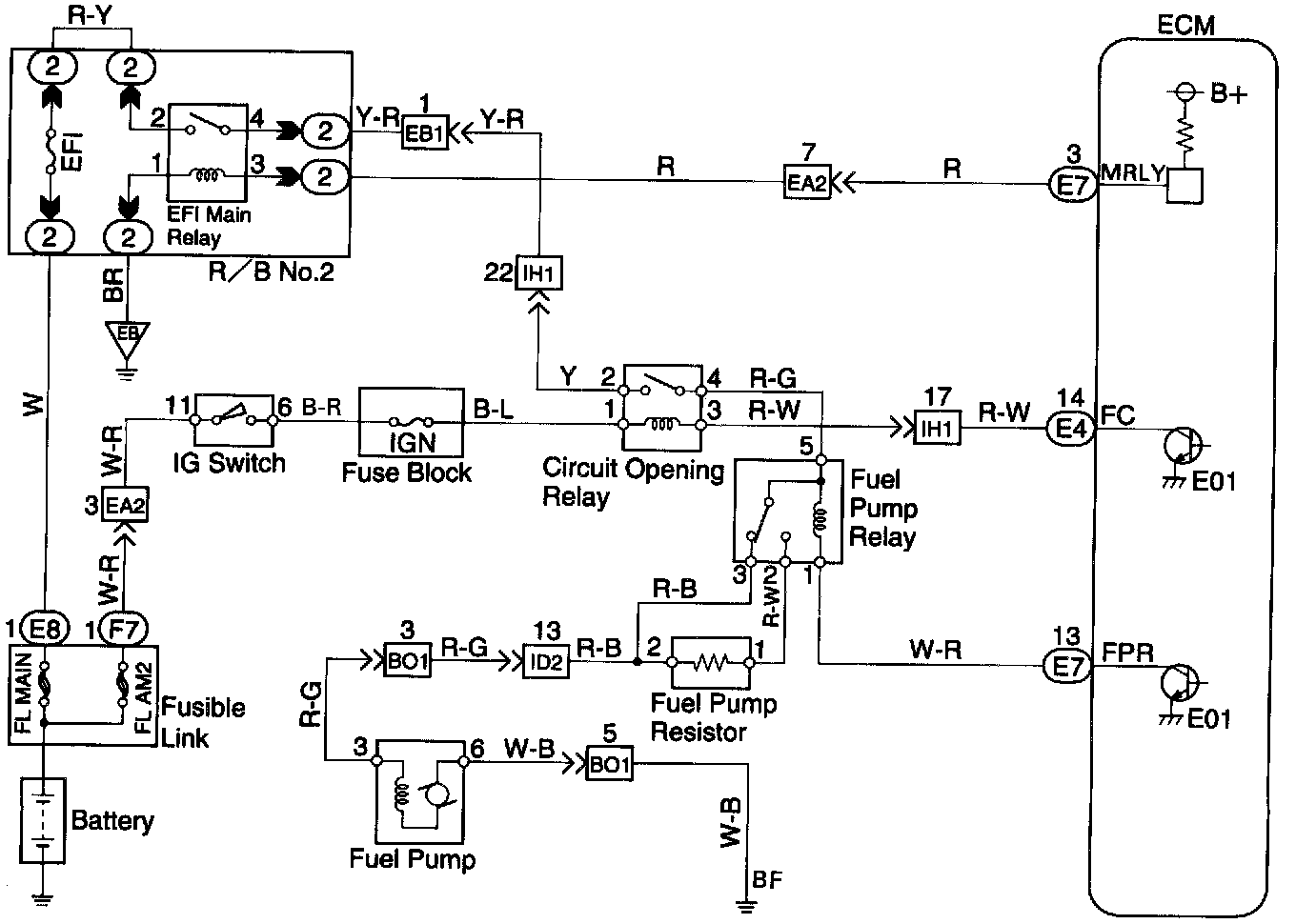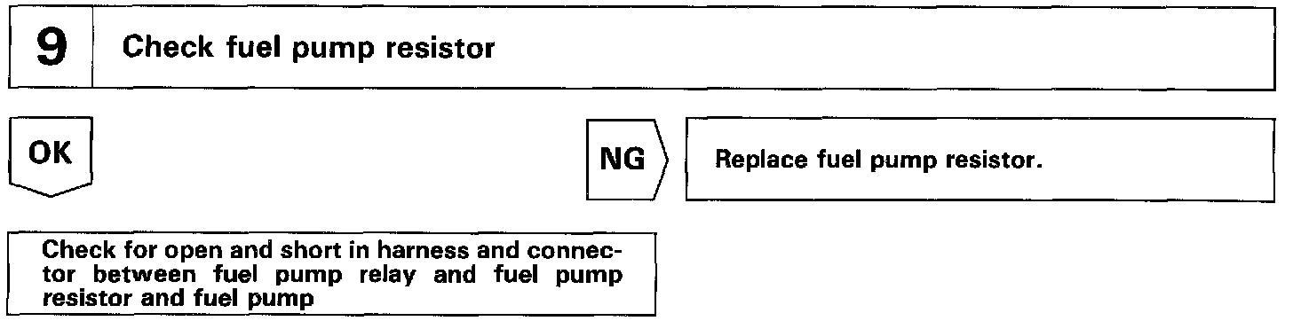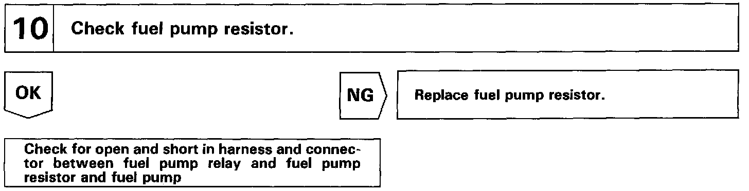 After the engine starts, during idling or light loads, since Tr2 goes ON, power is supplied to the fuel pump via the fuel pump resistor.