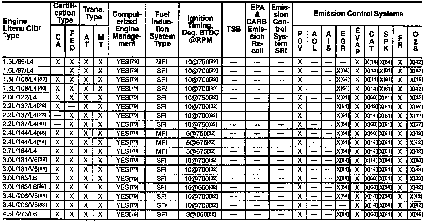 42 - 4 speed transmission, 5 degrees BTDC at 550 RPM; 5 & 6 speed transmissions w/manual steering, 5 degrees BTDC at 800 RPM; 5 & 6 speed transmissions w/power steering, 5 degrees BTDC at 650 RPM.