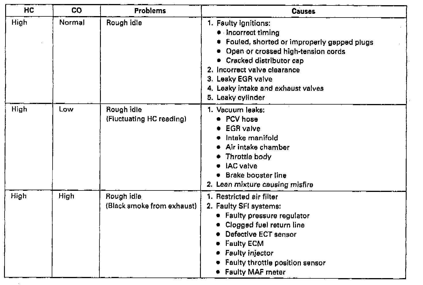 5. Immediately check CO/HC concentration at idle and/or 2,500 RPM.