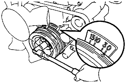 (a) Turn the crankshaft pulley until the timing mark is aligned with 0 mark on the timing chain cover.