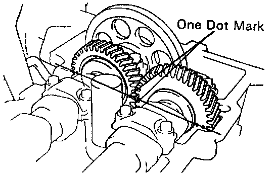 (b) Verify that the timing marks with 1 and 2 dots are in straight line on the cylinder head surface as shown in the illustration.