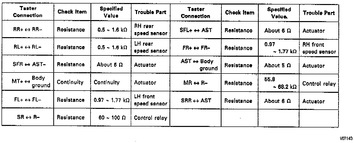 NOTE: If the circuit is not as specified, check and repair or replace the trouble part shown in the table.