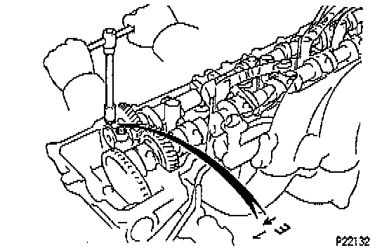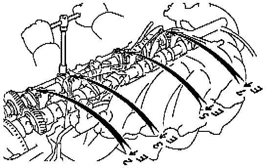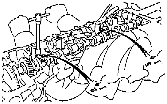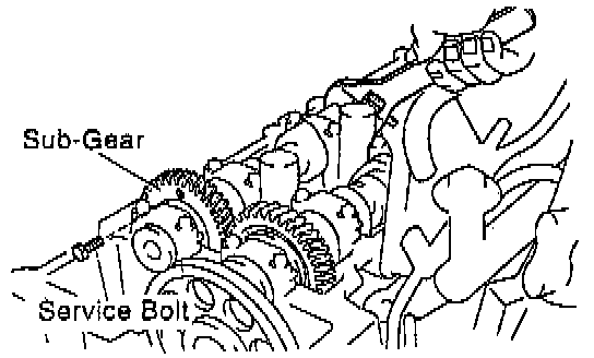 (m) Bring the service bolt installed in the driven sub-gear upward by turning the hexagon wrench head portion of the camshaft with a wrench.