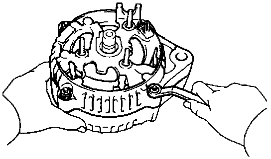 b. Remove the 3 nuts, bolt, rectifier plate and rear end cover.