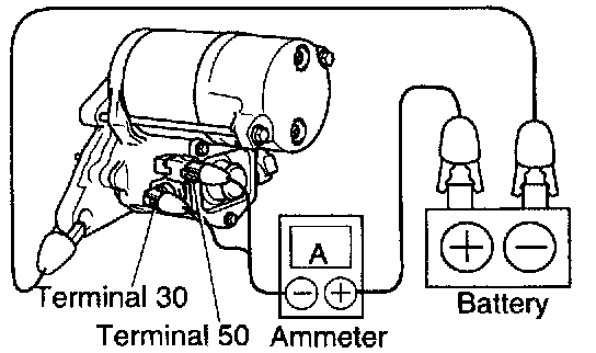 a. Connect the battery and ammeter to the starter as shown.
