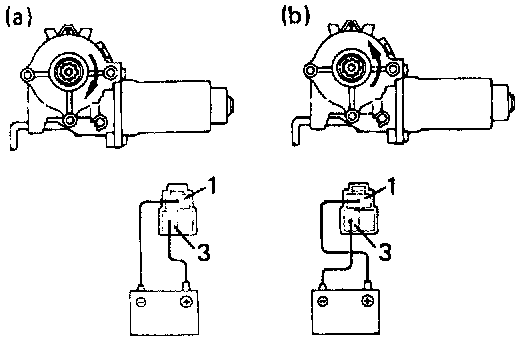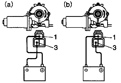 a. Connect the positive (+) lead from the battery to terminal 1 and the negative (-) lead to terminal 3, and check that the motor turns clockwise.