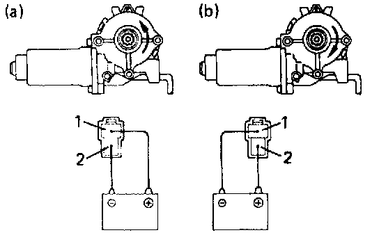 a. Connect the positive (+) lead from the battery to terminal 1 and the negative (-) lead to terminal 2, and check that the motor turns counterclockwise.