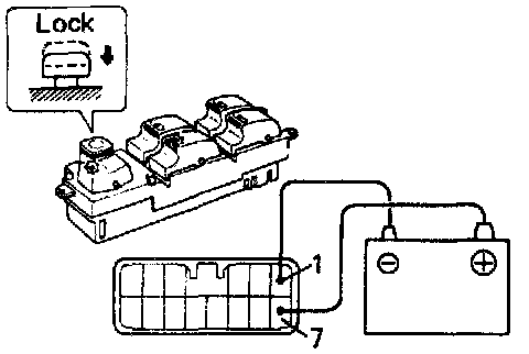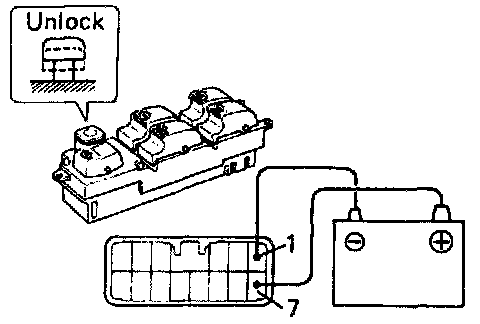 b. Connect the positive (+) lead from the battery to terminal 7 and the negative (-) lead to terminal 1, and check that all the illuminations light up.