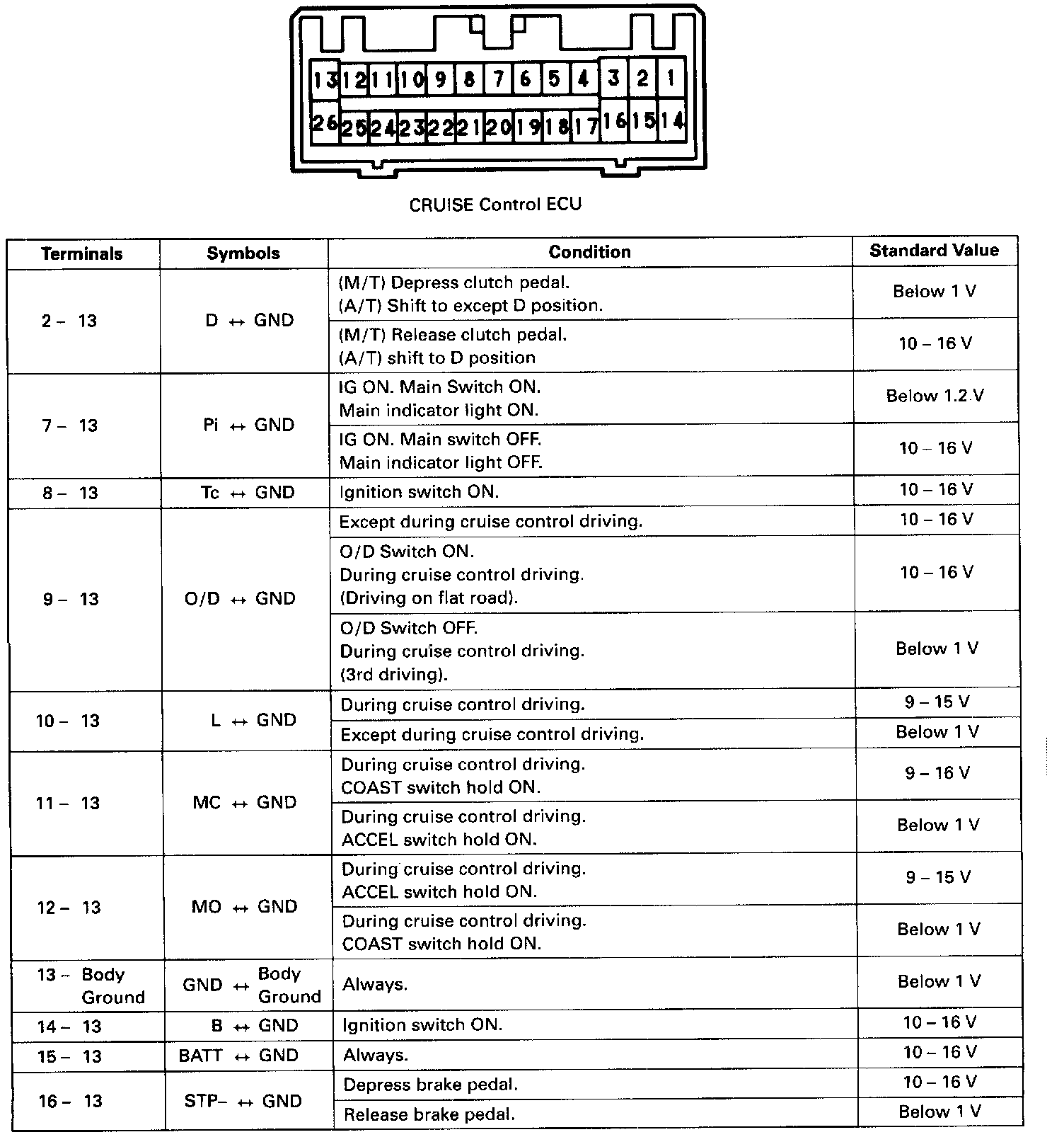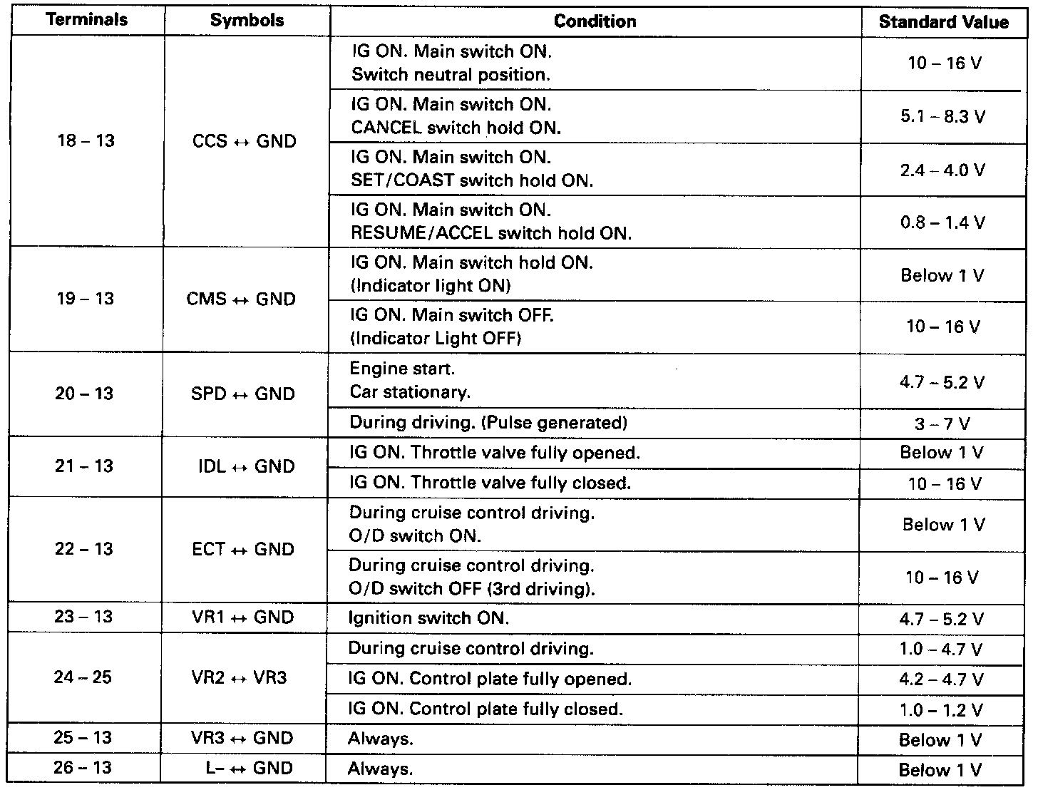Standard Values Of ECU Terminals (1 Of 2):